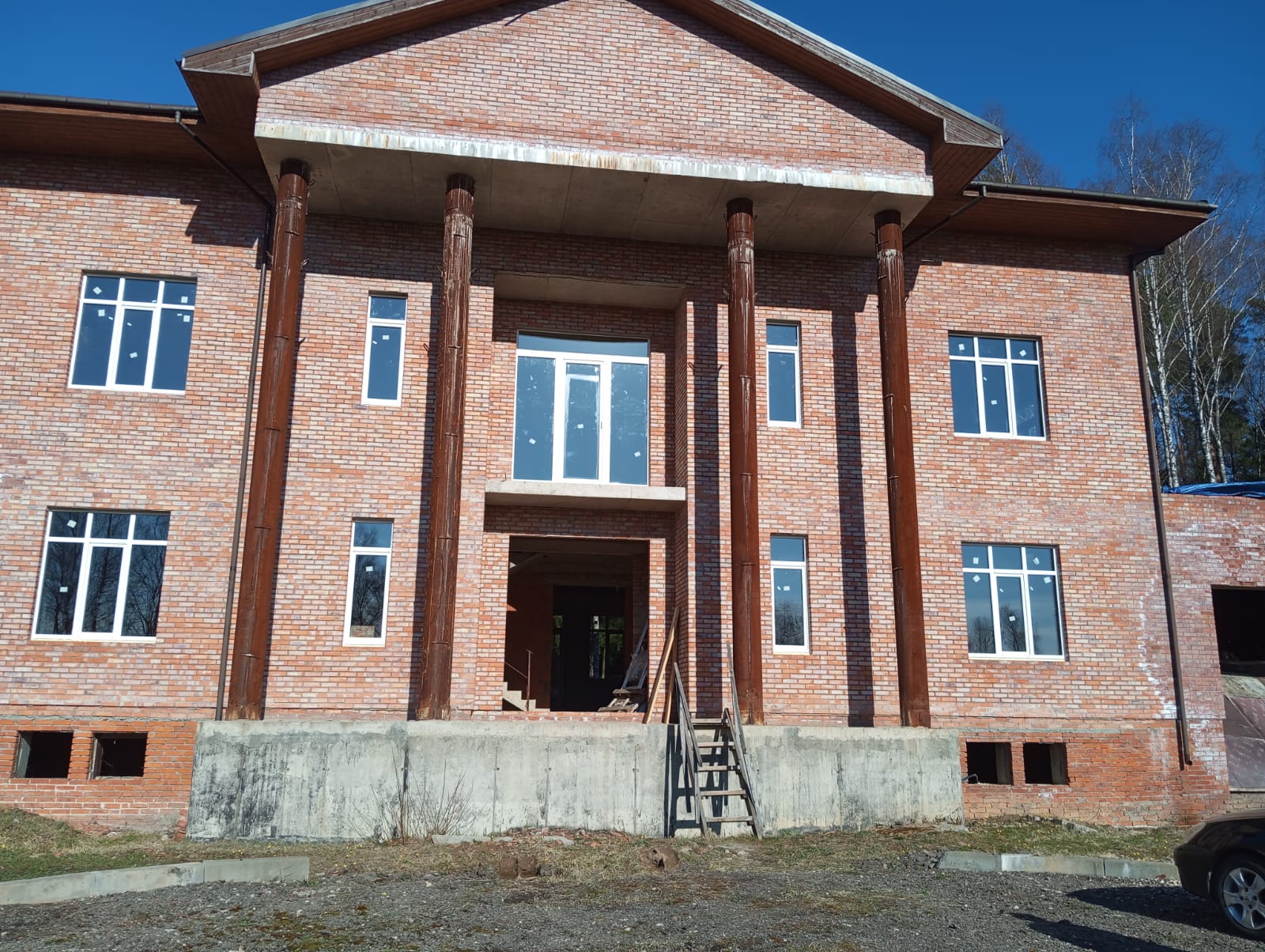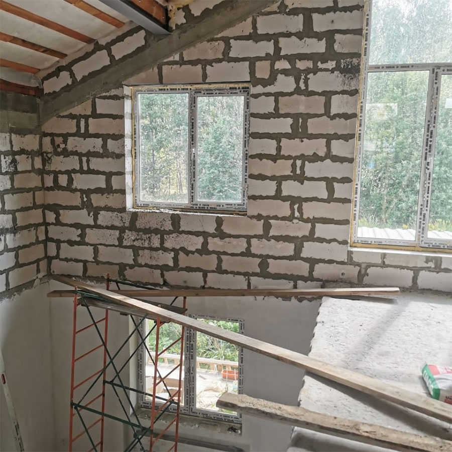 - Выполненные работы: На первом этаже входная группа из профильной системы Rehau. На втором этаже стандартные прямоугольные окна, ламинация снаружи в цвет Махагон. Вывоз мусора